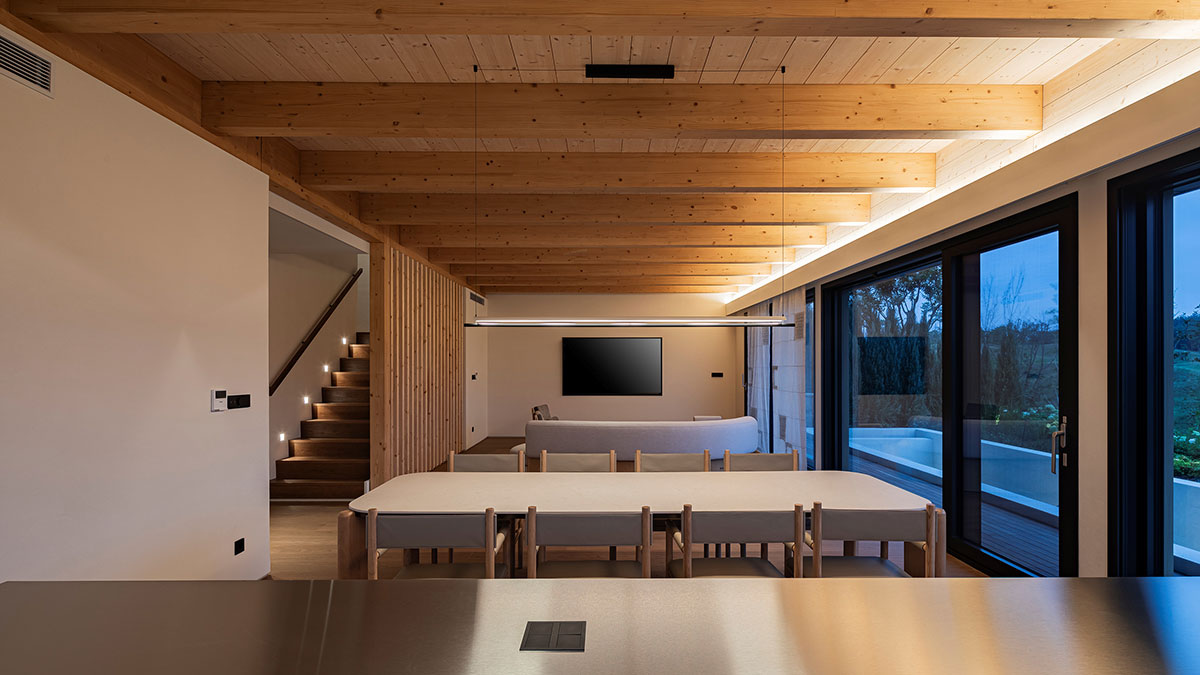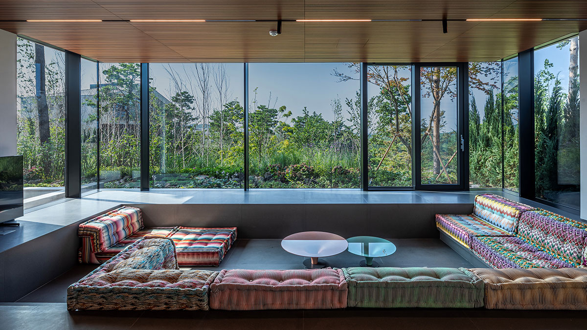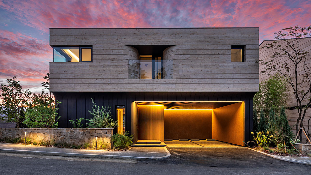 나무의 향과 멋이 살아 있도록 목구조를 노출시켰으며, 천창을 통해 비춰진 그림자가 자연스러움을 극대화하고 국내 유일의 2중 목구조와 간접조명으로 멋을 더했습니다. 1층에는 10미터의 야외 수영장과 야외 욕조가, 2층에는 가족들의 아지트인 원형 소파와 자연을 비추는 긴 복도, 널찍한 테라스로 가족의 웃음이 떠나지 않는 공간입니다.